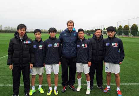 Các cầu thủ của Học viện HAGL Arsenal JM chụp ảnh lưu niệm cùng HLV Wenger (thứ 3 từ trái sang, hàng 2) |
