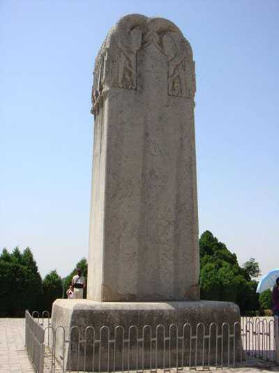 Gây tranh cãi nhất là tấm bia khổng lồ, cao tới 7,5m, nặng gần 100 tấn, không có chữ nào, gọi là vô tự. Trong khi ở phía tây, tấm bia trước lăng mộ Đường Cao Tông thì có những dòng chữ chói vàng óng ánh ca ngợi công đức.