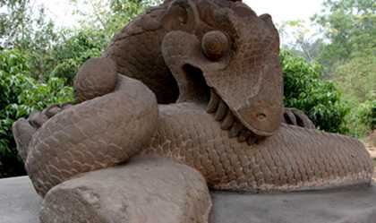 Có thể nói, đây là công trình điêu khắc đầy quằn quại, một sự đau đớn không biết chia sẻ với ai, chỉ có thể tự cào xé thân mình. Người dân trong vùng miêu tả nội dung bức tượng bằng một câu ngắn gọn: “Miệng cắn thân, chân xé mình”.