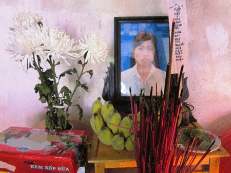 | Bàn thờ và di ảnh của chị Nguyệt (ảnh: Lê Văn Vy) |