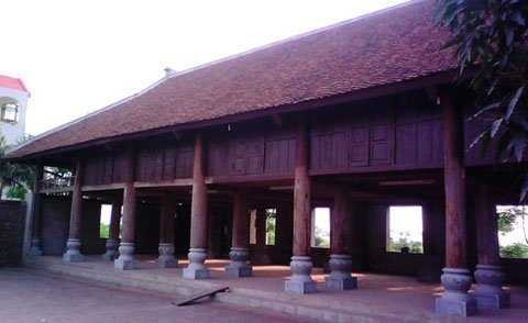 | Một ngôi nhà bằng gỗ lim cổ theo kiểu truyền thống 5 gian, đặc trưng của người nông dân ở đồng bằng Bắc Bộ với những nét chạm trổ công phu và trang trí cầu kỳ: hai bên cửa là hàng câu đối sơn son thiếp vàng cùng những hoành phi câu đối. |