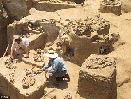 Các nhà nhân chủng học thuộc đại học Utah Valley (Mỹ) đến nghiên cứu và cho biết: "Khu hầm mộ này có rất nhiều thi thể được chôn cất trong tình trạng không mảnh vải che thân và một số cơ thể đã mất đầu.