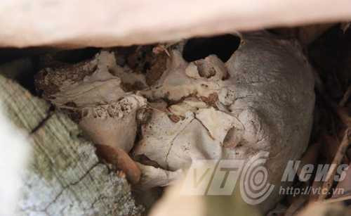 Ông Mùi Văn Chiển lấy một khúc gỗ cứng, to bằng cổ tay đâm vào vết hở của một áo quan, rồi bẩy mạnh tạo khe hở lớn. Tôi nhìn vào bên trong quan tài, thấy xương ống chân còn nguyên vẹn ở phần cuối, và phần đầu áo quan là hộp sọ trắng hếu, hàm răng đã vỡ nhưng vẫn còn dính những chiếc răng ở trên.