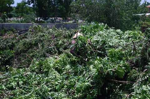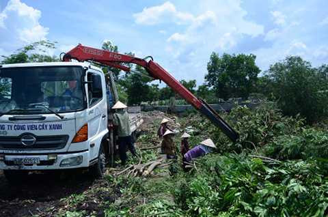 Dưới cái nắng như đổ lửa giữa trưa Sài Gòn, một chiếc xe tải đánh lái lùi về cái hố to để hất đống nhánh cây nhùng nhằn xuống. Cần cẩu còn đang vung vít đẩy những đoạn cây xuống hố, 4 người phụ nữ đã nhanh thoăn thoắt trèo lên đống cây để lựa những cây to, chặt gọn rồi quẳng lên mé đường bất chấp cánh tay cần cẩu có thể va vào đầu họ nếu như bất cẩn.