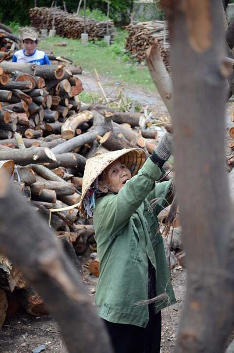 Ở bãi củi này, người ta quen gọi cụ là bà Hai. Dù phải làm lụng cực nhọc để mưu sinh nhưng bà Hai rất vui tính. Thấy có phóng viên chụp ảnh, bà vội vàng bảo đợi chút, để bà vô trang điểm lại rồi hãy chụp.