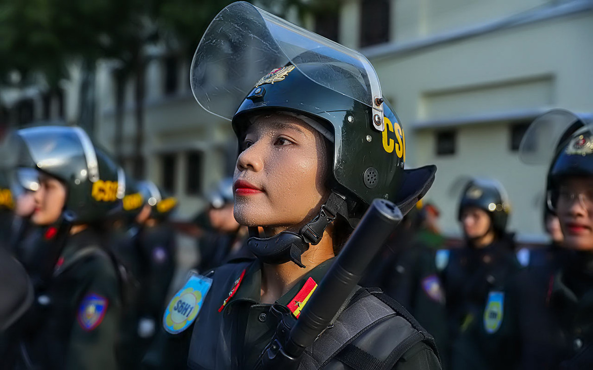 Giữa hơn 3.000 chiến sĩ ngày đêm miệt mài luyện tập cho lễ diễu binh, hình ảnh những nữ chiến sĩ Cảnh sát đặc nhiệm và Cảnh sát giao thông kiên cường trên thao trường càng trở nên nổi bật.