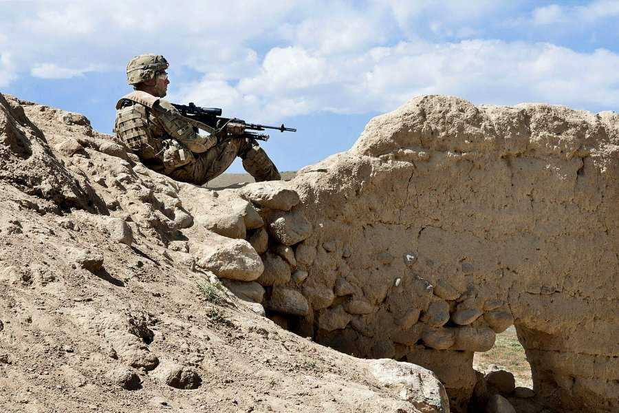 Lính Lữ đoàn dù 82 canh gác cùng súng trường Mk 14 Enhanced Battle Rifle tại Ghazni, Afghanistan