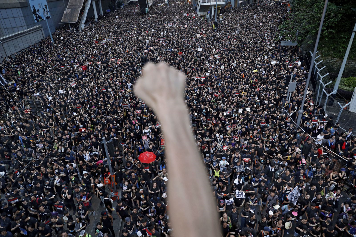 Người dân tuần hành trên đường phố Hong Kong để phản đối dự luật dẫn độ gây tranh cãi vào tháng 6/2019. Trưởng đặc khu Carrie Lam rút dự luật vào ngày 4/9, nhưng bà từ chối bốn yêu cầu khác của người biểu tình. (Ảnh: AP)