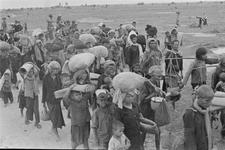 Người dân Campuchia chạy sang lánh nạn trên vùng biên giới Tây - Nam của Việt Nam để tránh bị khơ me đỏ hành quyết. (Ảnh: TTXVN)
