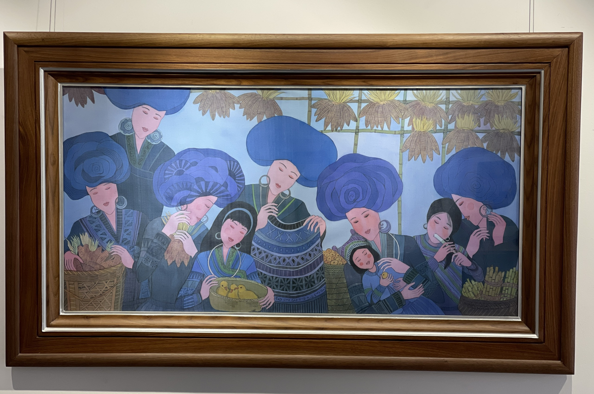 Tác phẩm của Hà Hùng Dũng cũng có nét riêng biệt trong bố cục tạo hình, không đơn thuần là tả mà mang đậm chất đồ họa, các hoa văn nhìn thoáng thì có vẻ như hoa văn vùng Tây Bắc, nhưng đều được tạo hình mới hoàn toàn, mang đậm dấu ấn sáng tạo.