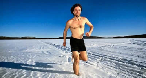 | Anh đã từng leo lên đỉnh núi Mont-Blanc chỉ với một chiếc quần đùi trên người trong mùa băng tuyết bao phủ và phá mọi kỷ lục trước đó về sức chịu đựng cái lạnh. |
