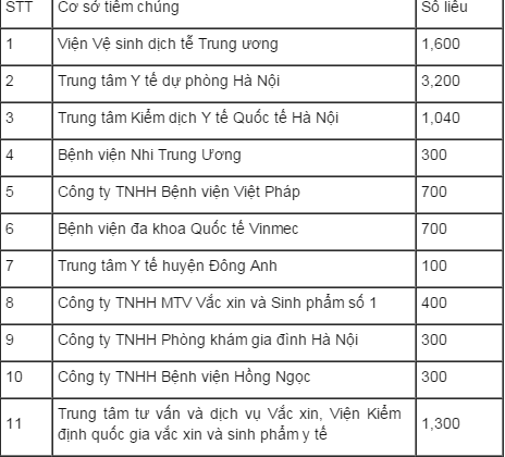 | Danh sách 17 điểm tiêm tại Hà Nội. Ảnh: Sức Khỏe Đời Sống. |