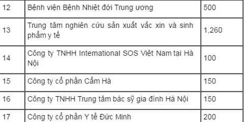 Còn với vắc xin dịch vụ Pentaxim, trong đợt này, cả nước có 161 điểm tiêm. Riêng Hà Nội, có 17 cơ sở tiêm chủng được phân bổ vắc xin Pentaxim, bao gồm: