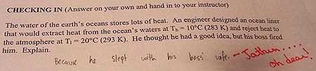 Trong bài kiểm tra môn địa lý, lực hút nào mạnh nhất trên trái đất? Một học sinh đã trả lời rằng đó là tình yêu.