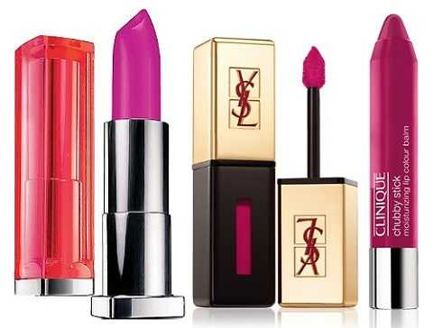 | Từ trái qua: Son màu berry sáng Maybelline Color Sensations Vivids Lipcolor; Sự kết hợp hoàn hảo giữa màu son và độ bóng trong Rogue Pur Couture Vernis A Levres Glossy Stain in Fuchsia Neo-Classic; Son có độ dưỡng ẩm cao Chubby Stick in Pudgy Peony. |