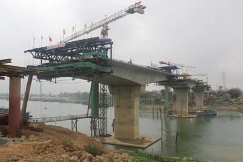 | Cầu Việt Trì mới đang gấp rút hoàn thiện (Ảnh: Bộ GTVT) |