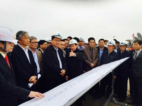 | Bộ trưởng Đinh La Thăng kiểm tra tiến độ dự án cao tốc Hải Phòng - Hà Nội (Ảnh: Bộ GTVT) |