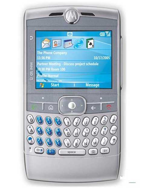 | Motorola Q. Được thiết kế để cạnh tranh với các smartphone BlackBerry, Motorola Q có dạng thanh với bàn phím QWERTY đầy đủ và màn hình 2,4 inch, độ phân giải 320 x 240 điểm ảnh (không cảm ứng). Màn hình này được bố trí lệch tâm, hơi đẩy về bên phải của Moto Q. Với độ dày 11,5mm, Motorola Q được coi là smartphone rất mỏng và phong cách vào thời điểm bấy giờ. |