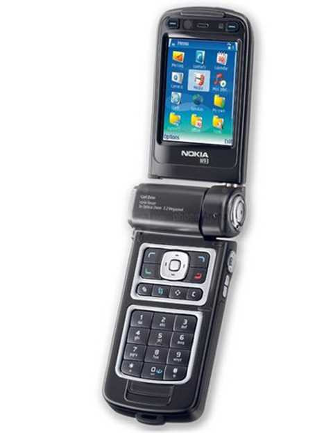| Nokia N93. Tiếp nối thành công của Nokia N90 và Nokia N92, N93 phát hành ra thị trường vào tháng 7/2006, trở thành smartphone có camera cao cấp nhất của Nokia vào thời điểm bấy giờ. N93 là thiết bị Nseries cao cấp: một cỗ máy đa phương tiện có tích hợp camera Carl Zeiss 3,2MP với zoom quang 3x, khả năng tự động lấy nét, quay video độ phân giải 640x480 điểm ảnh ở tốc độ 30 khung hình/giây. Đây là điện thoại Nokia đầu tiên trang bị khả năng zoom quang và khả năng quay video cao cấp như vậy. |