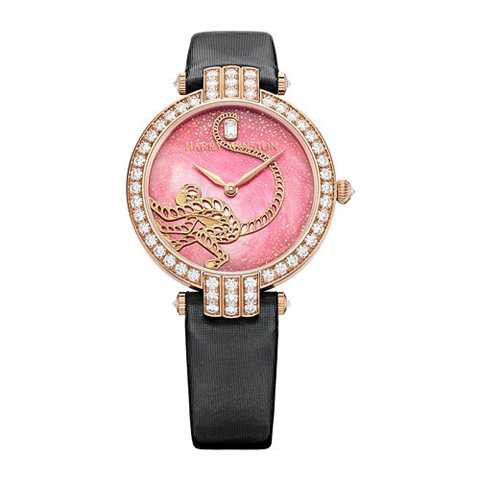 | Harry Winston: Nằm trong bộ sưu tập Premier Collection, mẫu đồng hồ này có mặt số được tạo hình và trang trí bởi một chú khỉ bằng vàng hồng thiết kế vô cùng tinh xảo. Đuôi chú khỉ quấn quanh một viên kim cương. Đồng hồ gồm 186 chi tiết và sản xuất giới hạn với 8 chiếc. |