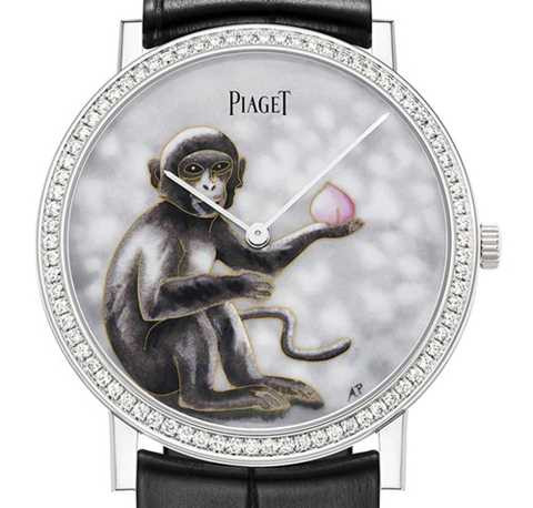 | Mừng năm Bính Thân 2016, hãng đồng hồ cao cấp Piaget đã tung ra thiết kế đặc biệt với bề mặt mang hình ảnh chú khỉ đặc trưng văn hóa châu Á. Bề mặt đồng hồ mang tên Piaget Altiplano khắc họa hình chú khỉ đang vui vẻ cầm quả đào, đây là hình ảnh quen thuộc trong chuyện dân gian Trung Hoa cũng như văn hóa Á Đông. |