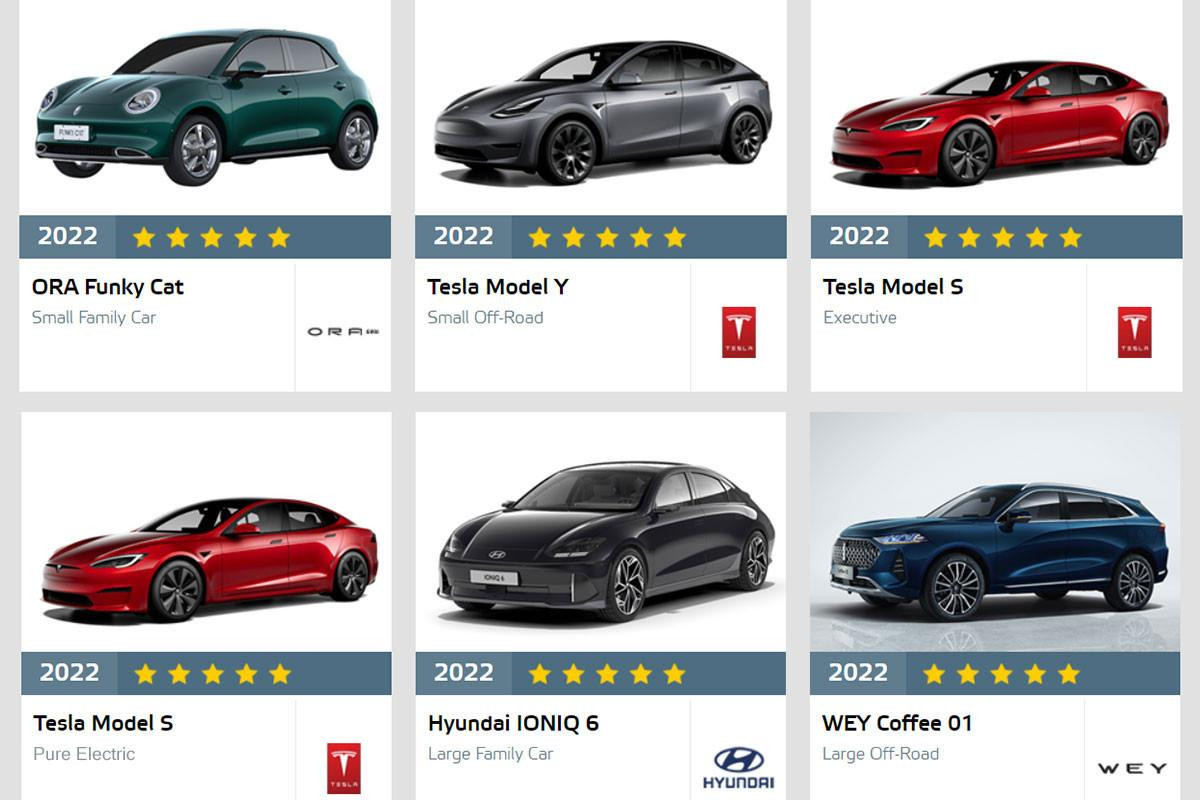 Đáng chú ý hơn, Euro NCAP cho biết đây là lần đầu tiên có hai mẫu xe đến từ Trung Quốc nằm trong danh sách những mẫu xe an toàn nhất năm 2022 và 2 mẫu Tesla khác nhau được vinh danh là chiếc xe tốt nhất trong từng phân khúc mà nó cạnh tranh.