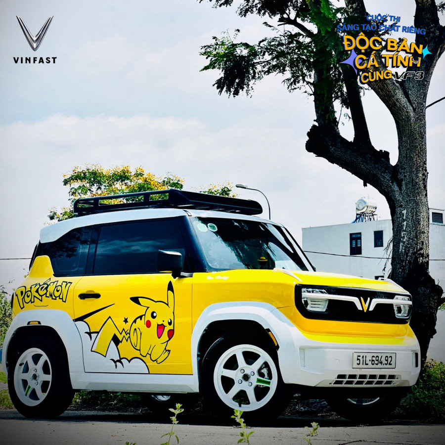 Trong đó, bài dự thi của chủ xe Nguyễn Ngọc Huyền gây chú ý khi nhận về hơn 3.300 lượt yêu thích và 108 lượt bình luận. Chiếc xe vẫn giữ tông màu vàng nguyên bản làm chủ đạo, điểm xuyết thêm họa tiết Pikachu nhằm tăng tính dễ thương, đồng thời sơn trắng nhiều chi tiết nhựa nhám đen tạo cảm giác nữ tính, phối hợp với bộ mâm màu trắng đem lại một tổng thể đầy trẻ trung và năng động.