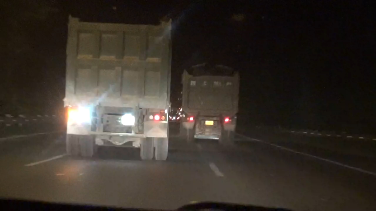 Những chiếc xe 'thải bậy' ra đường phố Hà Nội đi ra từ công trường trên đường Phạm Hùng còn có dấu hiệu đổ chất thải xây dựng không đúng nơi quy định.