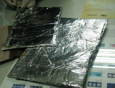| Cocaine được ép mỏng và gói giấy bạc. Ảnh: Hải quan cung cấp. |