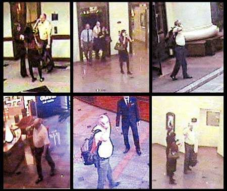 | Đối tượng Vasilescu Serban Dan sau khi đem tiền của bị hại đi khỏi khách sạn (áo phông trắng, quần bò đeo ba lô), ảnh chụp qua camera an ninh. |