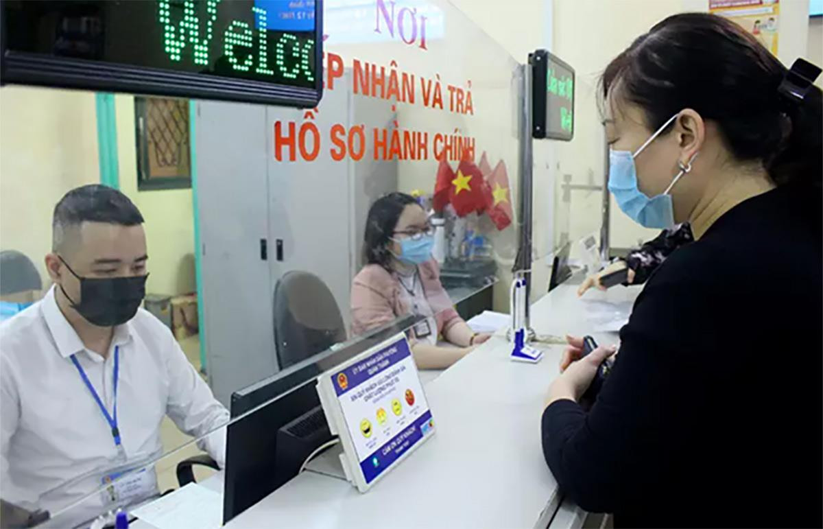 Người dân làm thủ tục tại bộ phận một cửa. (Ảnh: Cổng TTĐT Hà Nội)