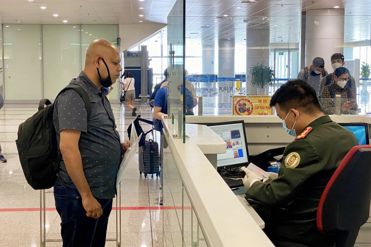Khách quốc tế làm thủ tục nhập cảnh vào Việt Nam tại cảng Hàng không quốc tế Nội Bài. (Ảnh: TTXVN)
