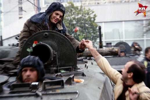 Đúng thế. Họ la toáng lên rằng Nhà trắng sẽ bị tấn công. Họ đẩy tình hình cho căng thẳng lên. Rồi Shevardnadze đã cầm súng tới đó. Rồi Rostropovich (danh cầm cello). Ông ấy còn gối đầu ngủ lên chân một người lính! Làm sao lính lại tấn công ông ấy được!