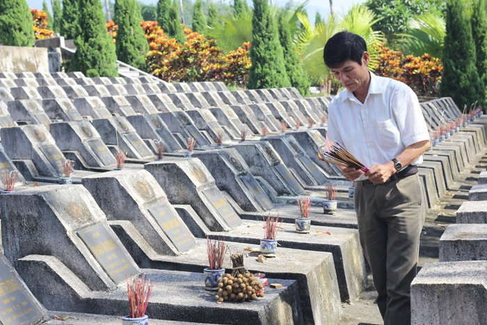 Chỉ tay vào người đàn ông dáng vẻ gầy gò, khắc khổ, đang ngồi bần thần bên nấm mồ phía bên phải nghĩa trang, anh quản trang bảo: “Năm nào cũng vậy, cứ đến lễ tết, giữa tháng hai, các ngày 12/7, ngày thương binh liệt sĩ 27/7, là bác kia cũng đều đến nghĩa trang, ngồi trò chuyện thật lâu ở nấm mồ đó. Tôi chưa hỏi chuyện, nhưng chắc là đồng đội của liệt sĩ”.