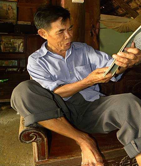 | Ông Ban Văn Giới say sưa đọc những câu thơ và kể về vẻ đẹp kỳ bí của hang Dơi |