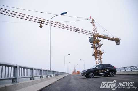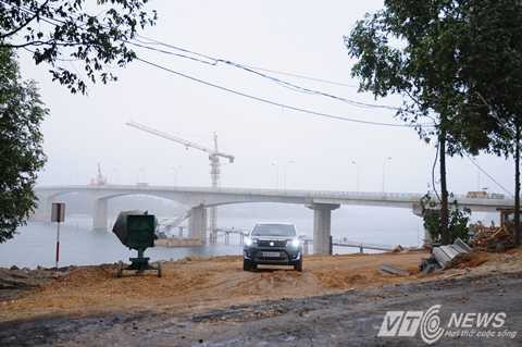 Cách bến phà chừng 200m, dự án cầu Đồng Quang (gọi tắt theo tên 2 xã đầu cầu 2 địa phương là Đồng Luận (Thanh Thủy) và Minh Quang (Ba Vì) đang bước vào những khâu cuối cùng như thảm nhựa mặt cầu, lắp đèn chiếu sáng.
