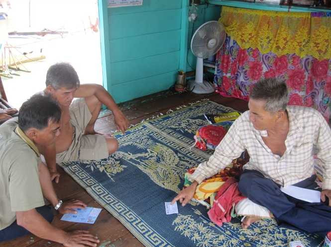 | Ông Võ Văn Đầy (phải) và các ngư dân người Việt ở Biển Hồ |