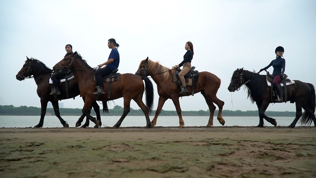 Những cô gái cưỡi ngựa, bắn cung dưới chân cầu Nhật Tân