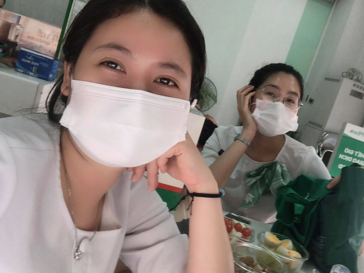 Hai cô gái 9x “mở đường” vào tâm dịch trong giờ nghỉ trưa hiếm hoi trong ngày.