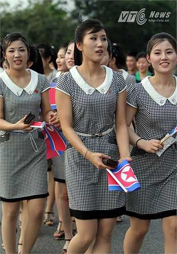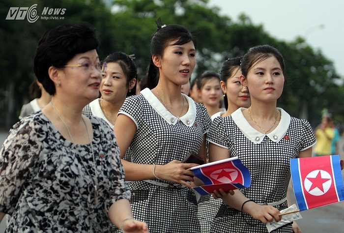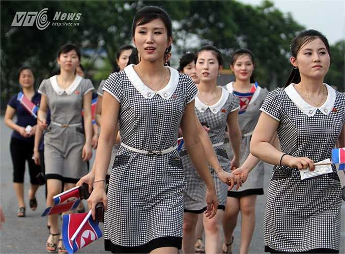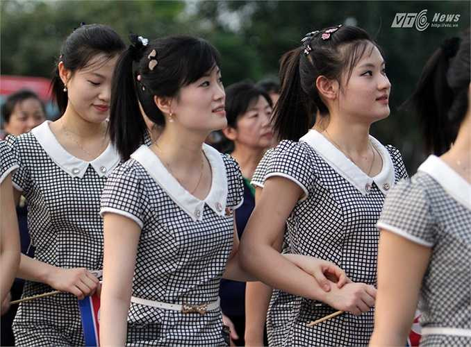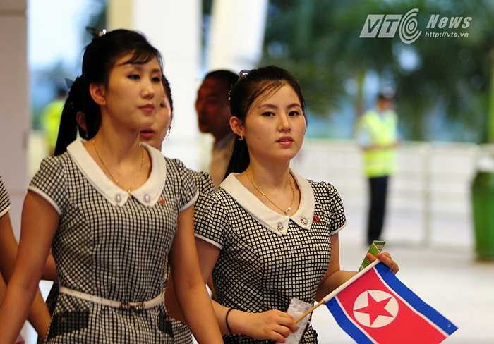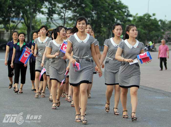 Những cô gái Triều Tiên xinh đẹp, xếp hàng chờ vào sân.