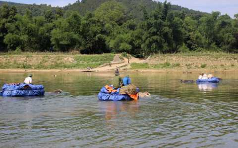 | Lúa, lạc, đậu và kể cả những bó củi đều được vận chuyện qua sông bằng cách này. Đây là con đường độc đạo để những người dân thôn Bình Quang, Tân Lệ đưa nông sản về nhà. |