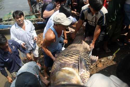 Cá hô gần 130kg ở nhánh sông Đồng NaiSáng 16/10/2014, anh Trần Minh Dũng (35 tuổi) đã thả lưới và bắt được con cá hô gần 130kg ở nhánh sông Đồng Nai (phía quận 9, TP HCM). Cá hô dài khoảng 1,5 m, ngang hơn 0,5m. Anh Dũng quyết đã bán con cá này cho một thương lái ở Thủ Đức với giá 1,5 triệu đồng/kg.