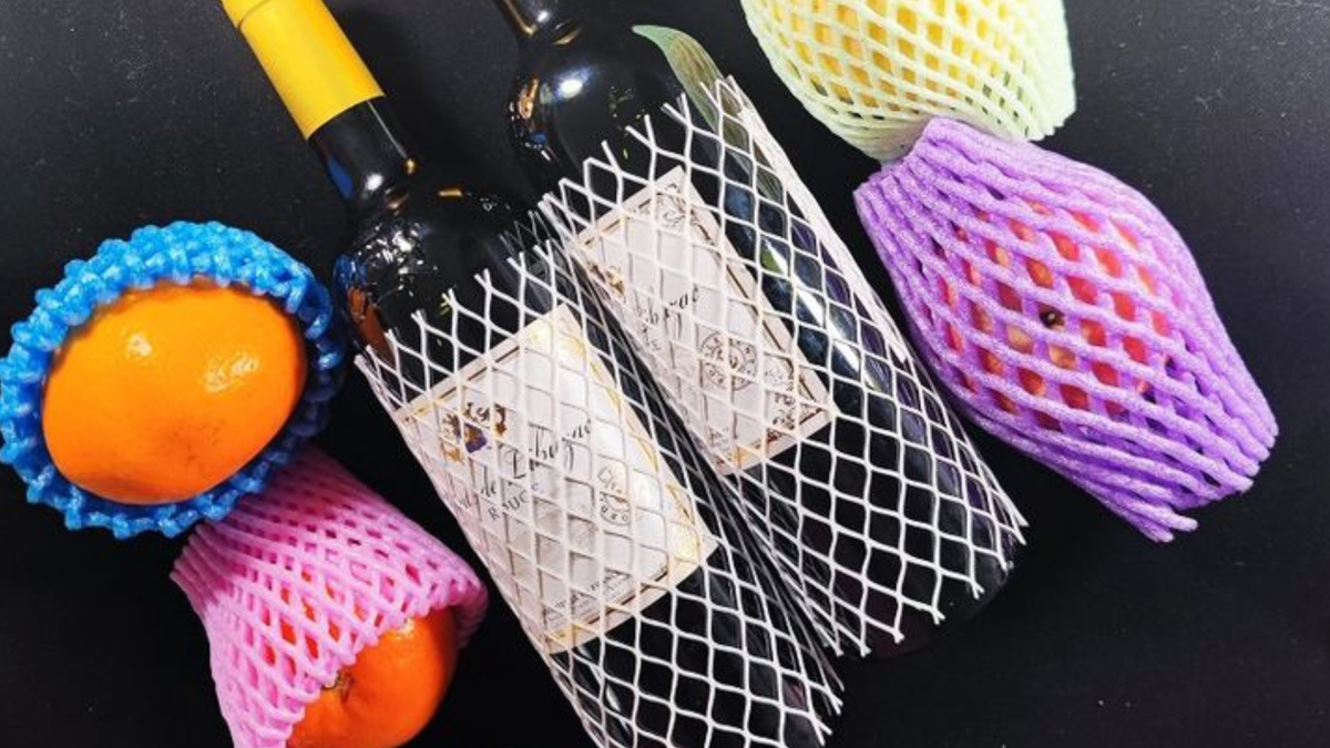 Túi lưới bọc trái cây được làm từ nhựa dẻo, thường là polyethylene (PE), có độ bền và tính linh hoạt cao. Chúng thường được sử dụng bọc từng trái cây để ngăn va đập trong quá trình vận chuyển, hạn chế tình trạng dập nát.