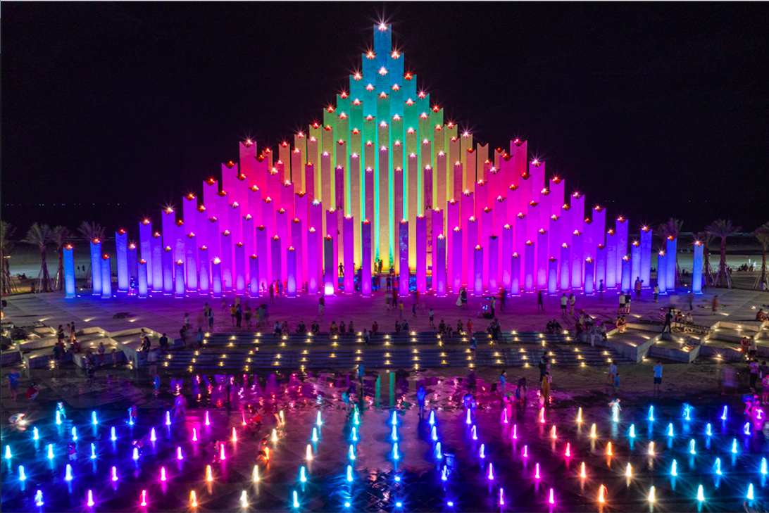 Bao quanh công trình là quảng trường trung tâm với cây xanh, đường dạo bộ và khu vực tổ chức lễ hội, tạo không gian mở để khách tham quan, tận hưởng không khí trong lành và hòa chung nhịp sống sôi động. Khi đêm xuống, ánh sáng nghệ thuật hòa cùng nhạc nước tạo nên khung cảnh rực rỡ, thu hút hàng ngàn lượt khách mỗi tối.