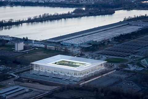 Sân vận động Matmut Atlantique, Bordeaux, Pháp nổi bật với kiến trúc mở và thanh lịch. Những chiếc cột đứng thanh mảnh giúp các cầu thang lớn tạo không gian mở giao hòa với xung quanh, tạo cảm giác cởi mở, dễ tiếp cận cho mọi người.