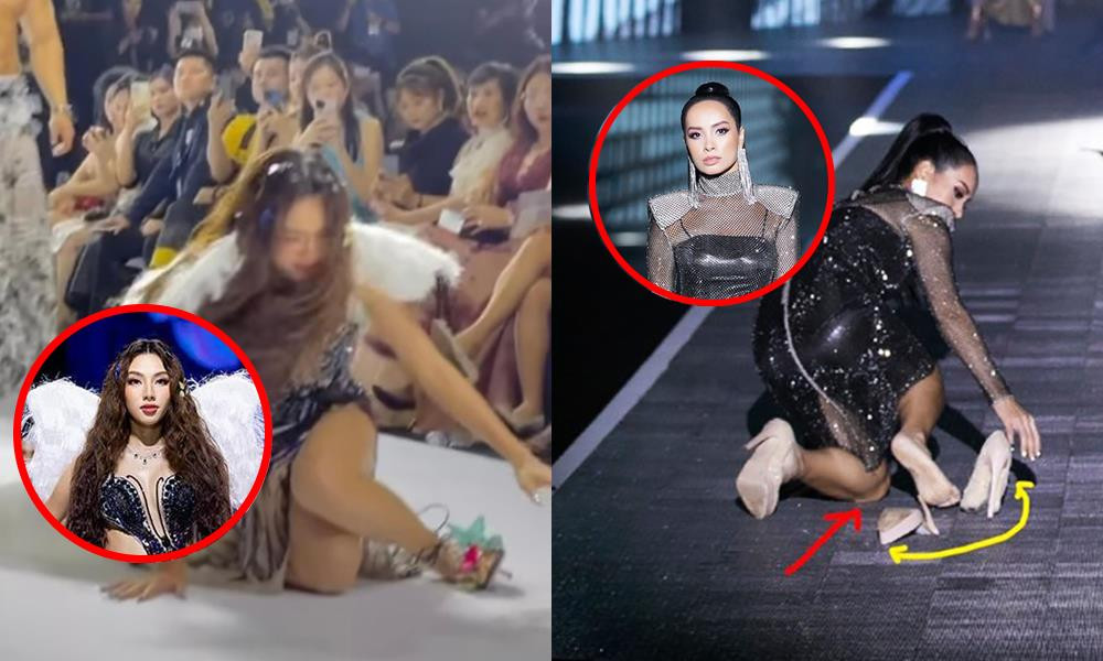 Siêu mẫu Thúy Hạnh ngã đập đầu gối xuống sàn catwalk.
