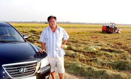 | Đại gia lái ô tô đi thăm ruộng. |