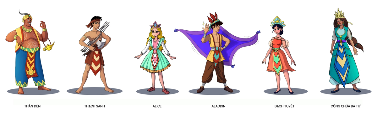 Các thí sinh ở nhiều độ tuổi trên mọi miền tổ quốc đã mang đến cuộc thi những ý tưởng tạo hình “nhân vật cổ tích phiên bản Việt” vô cùng độc đáo. Đó là chàng Aladdin đội mũ lông, đeo khố thổ cẩm, Thần đèn đội nón cối, nàng công chúa Ba Tư với nón lá, khăn rằn, công chúa Bạch Tuyết mặc áo dài cách tân, hay cô bé Alice phong cách với váy bồng năng động và chàng Thạch Sanh buộc khăn, đóng khố quen thuộc...