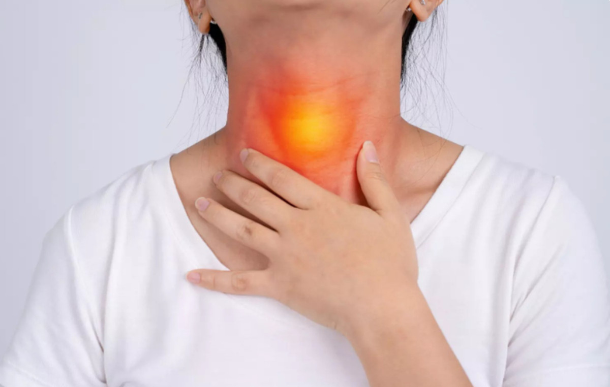 - Đau họng hoặc lưng, phía sau xương ức hoặc hai xương bả vai.
