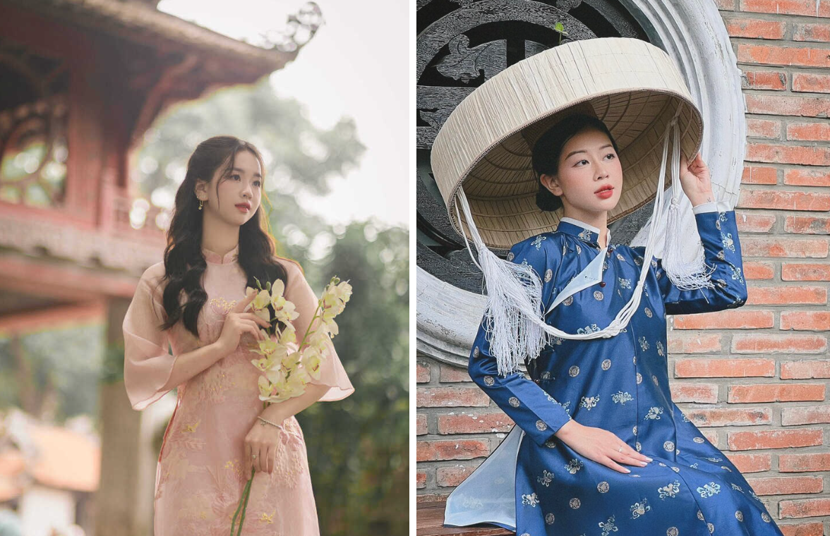 Là biểu tượng của văn hóa và tri thức Việt, Văn Miếu - Quốc Tử Giám có một không gian cổ kính, trang nghiêm, phù hợp cho những bức ảnh áo dài mang phong thái dịu dàng và truyền thống. Bên những bức tường rêu phong và mái ngói đỏ, tà áo dài như hòa quyện với không gian xưa, tạo nên những khung hình ấn tượng.